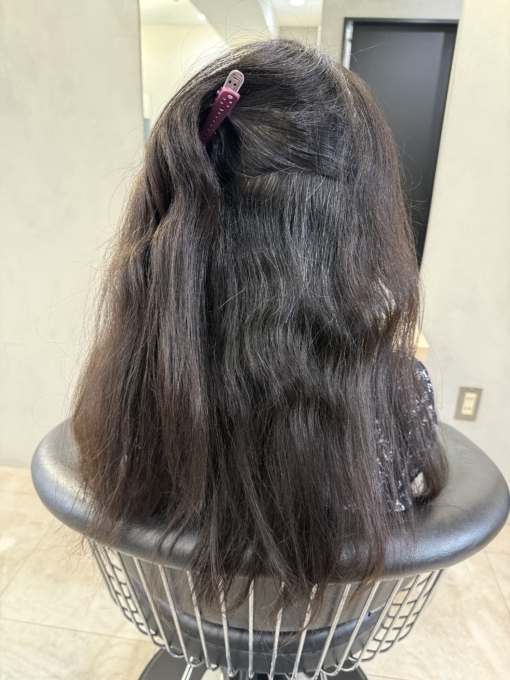 内巻きにしすぎるのも、数ヶ月後、毛先の落ち着きやまとまりが悪くなる場合もあるので、本日は少し馴染む程度の内巻きで施術しました。