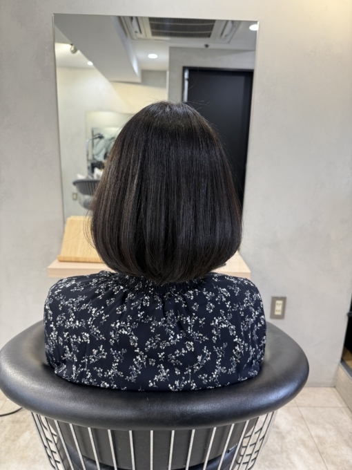 バッサリカットして、ボブスタイルにするお客様、乾かしてほんの少し内巻きになるようにかけさせていただきました!